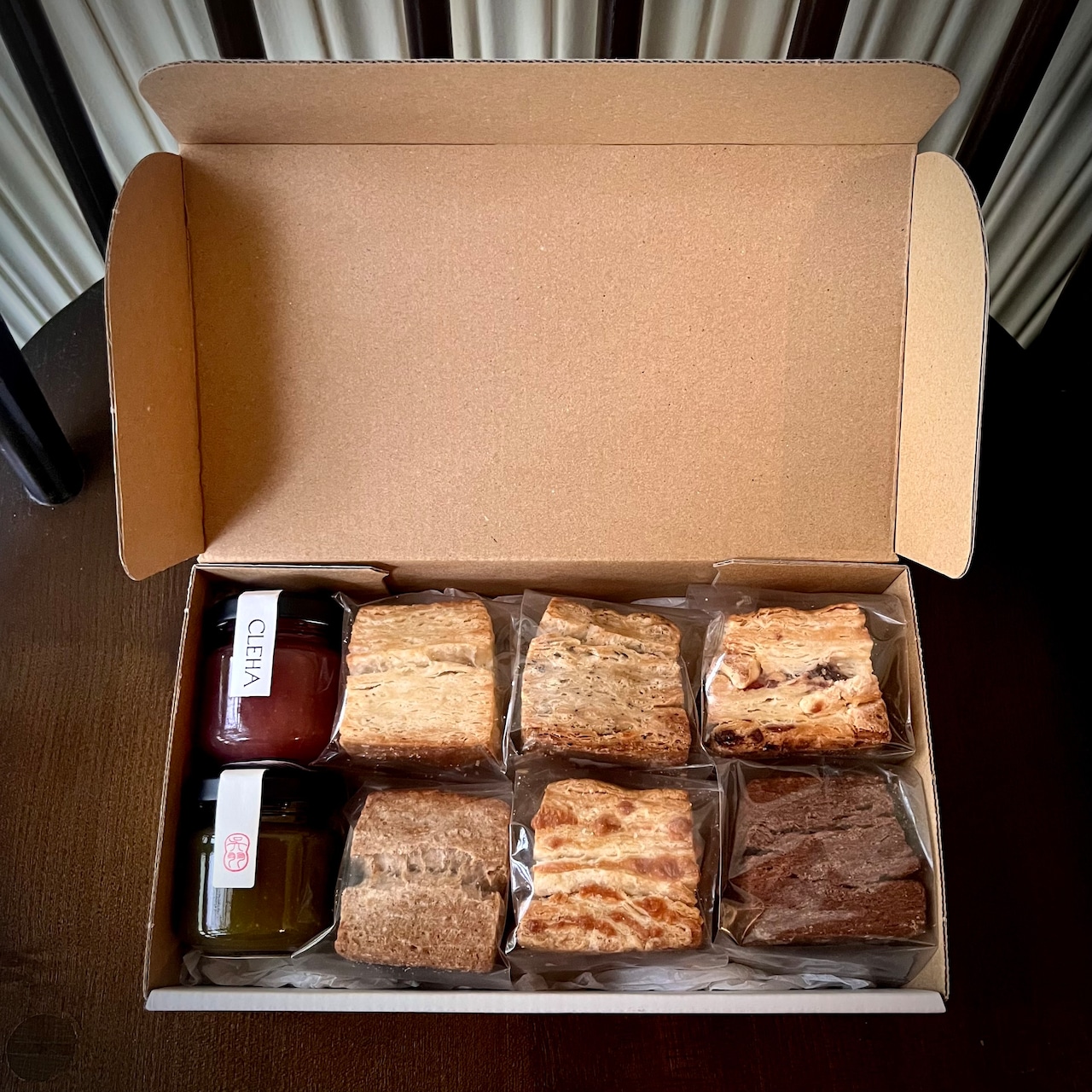 外側はミルフィーユを思わせるサクサクとした軽い食感。中はもっちり詰まっていながらも、ふかふかとした生地が折り重なり、層となっています。